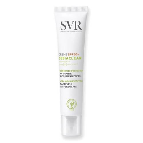 SVR Sebiaclear Crème SPF50Descrizione Crema trattamento anti-imperfezioni opacizzante con elevata protezione solare. Ideale per pelli da miste a grasse, con imperfezioni, esposte ai raggi UV. Limita la produzione di sebo, previene l’ispessimento della grana cutanea per evitare l’effetto rebound e la comparsa di macchie scure o rosse indotte dall’esposizione ai raggi UV. Texture vellutata, priva di olii, dry-touch. Modalità d'uso Applicare su viso, collo e décolleté al mattino come crema giorno. Componenti Aqua (purified water), homosalate, diethylamino hydroxybenzoyl hexyl benzoate, ethylhexyl methoxycinnamate, silica, ethylhexyl ...