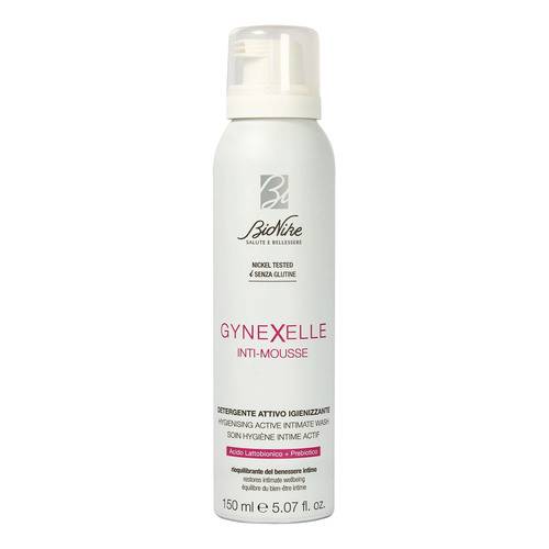 BioNike GYNEXELLE INTI-MOUSSEDescrizione Schiuma detergente a pH acido per l’igiene intima quotidiana, indicata durante il ciclo mestruale, in gravidanza, post-partum, menopausa e post-menopausa. Con Acido Lattobionico, prebiotico e sostanze ad azione antimicrobica di derivazione naturale che contribuiscono a ristabilire l’equilibrio della flora batterica e del pH vaginale. Modalità d'uso Agitare bene prima dell’uso ed erogare in posizione verticale. Distribuire e lasciare agire per qualche istante, quindi sciacquare. Componenti Aqua (water), butane, Hamamelis virginiana leaf water [Hamamelis virginiana (witch hazel) leaf water], ...